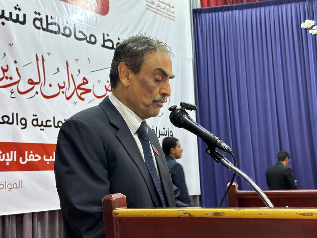 وفي كلمة ألقاها الأمين العام للمجلس المحلي بالمحافظة، عبدربه هشله، أعرب عن سعادته بالمشاركة في هذه المناسبة ذات البعد الإنساني والرسالة النبيلة، مرحبًا بإشهار المؤسسة، ومشيدًا بأهدافها ودورها المرتقب في خدمة مرضى القلب، مؤكداً الحاجة الملحة لإنشاء مركز تخصصي لأمراض القلب في شبوة، لمواجهة تزايد أعداد المصابين وصعوبة تغطية تكاليف العلاج الباهظة.