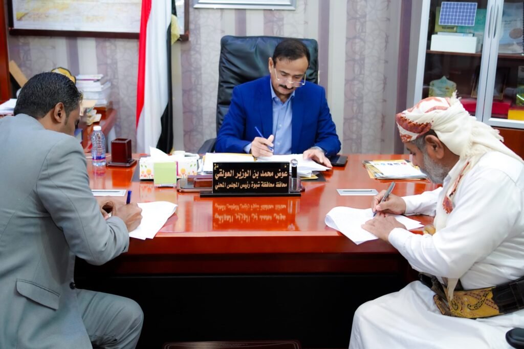 صادق محافظ محافظة شبوة، رئيس المجلس المحلي، عوض محمد بن الوزير، اليوم الأحد، على توقيع عقد مشروع توسعة المدخل الغربي لمدينة عتق، بطول إجمالي يبلغ خمسة كيلومترات وثلاثمائة وخمسين مترًا، وذلك بتمويل من السلطة المحلية بالمحافظة، في إطار جهودها الرامية إلى تطوير البنية التحتية وتعزيز المظهر الحضري لعاصمة المحافظة.