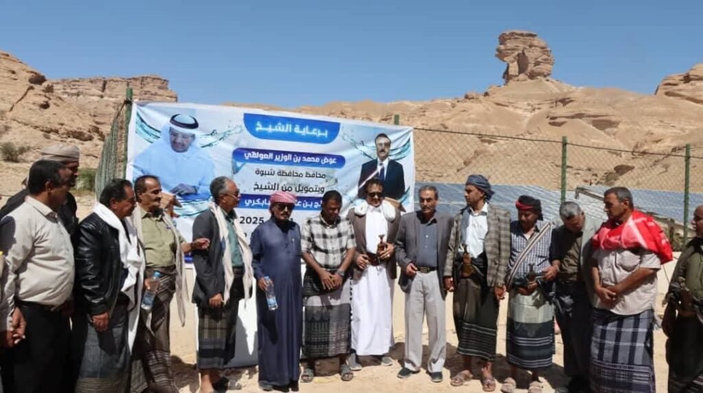 برعاية محافظ محافظة شبوة، عوض محمد بن الوزير دشن الامين العام للمجلس المخلي عبدربه هشله ناصر ومعه وكيل المحافطة فهد بن الذيب الخليفي، في منطقة خمر بمديرية عتق بدء ضخ المياه من البئر الارتوازية الجديدة التي جرى حفرها بعمق 550 متراً، لتوفير مصدر مائي مستدام يخدم أكثر من 6500 نسمة من سكان القرية والمناطق المجاورة.