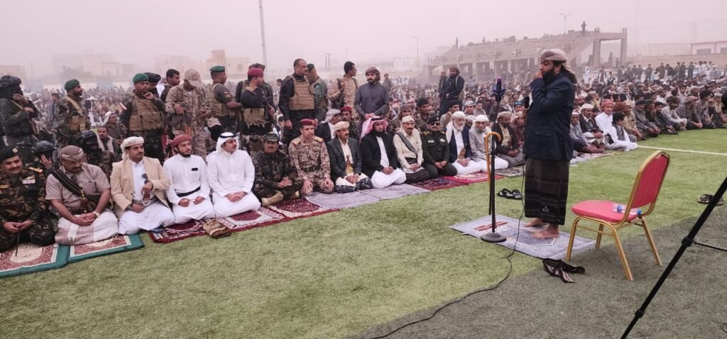 واختتم خطبته بالدعاء إلى الله تعالى أن يتقبل من الجميع صالح الأعمال، وأن يديم على محافظة شبوة والوطن عامة نعمة الأمن والاستقرار، وأن يعيد هذه المناسبة المباركة على اليمن وسائر الأمة الإسلامية بالخير واليُمن والبركات.