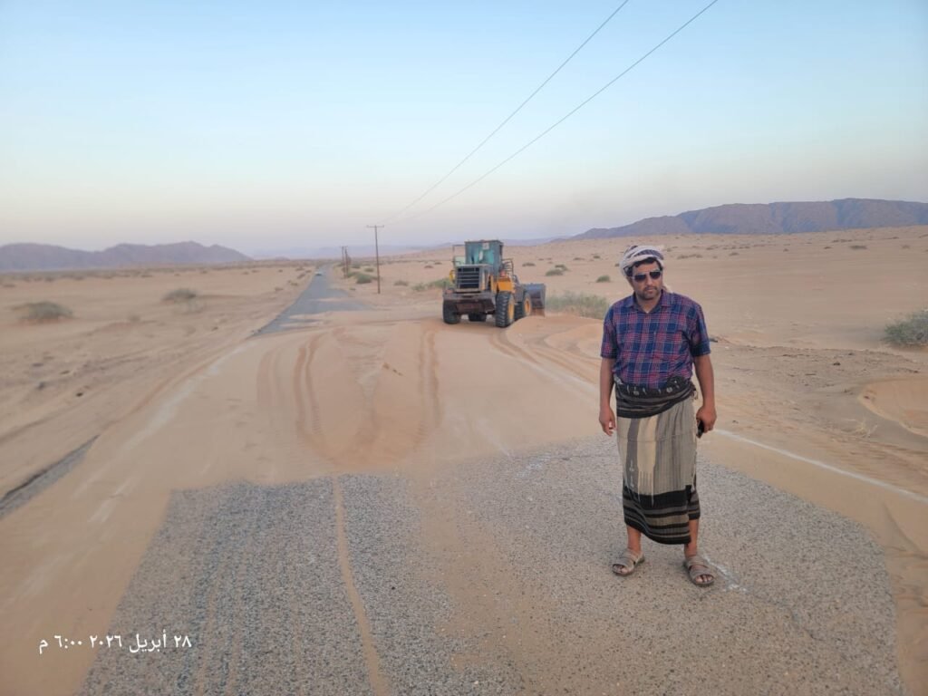 وتأتي هذه الأعمال بتمويل وإشراف صندوق صيانة الطرق – المركز الرئيسي بالعاصمة المؤقتة عدن، ضمن جهوده المتواصلة للحفاظ على شبكة الطرق الحيوية ورفع كفاءتها التشغيلية، خصوصاً في المناطق التي تتعرض لتراكمات رملية نتيجة العوامل المناخية والرياح الموسمية.