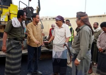 القائم بأعمال المحافظ يدشن أعمال الاسفلت في مشروع شق وسفلتة شارع الادارة المحلية بمدينة عتق