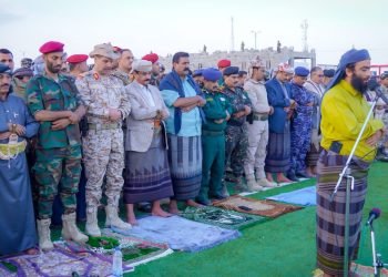 المحافظ ابن الوزير يؤدي صلاة عيد الفطر معَ جموع المصلين ويستقبل المهنئين ويزور المستشفيات الحكومية بالمدينة